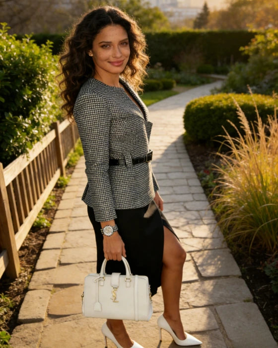 Negozio rapido Questo outfit emana un senso di eleganza classica e raffinatezza. L'insieme è...