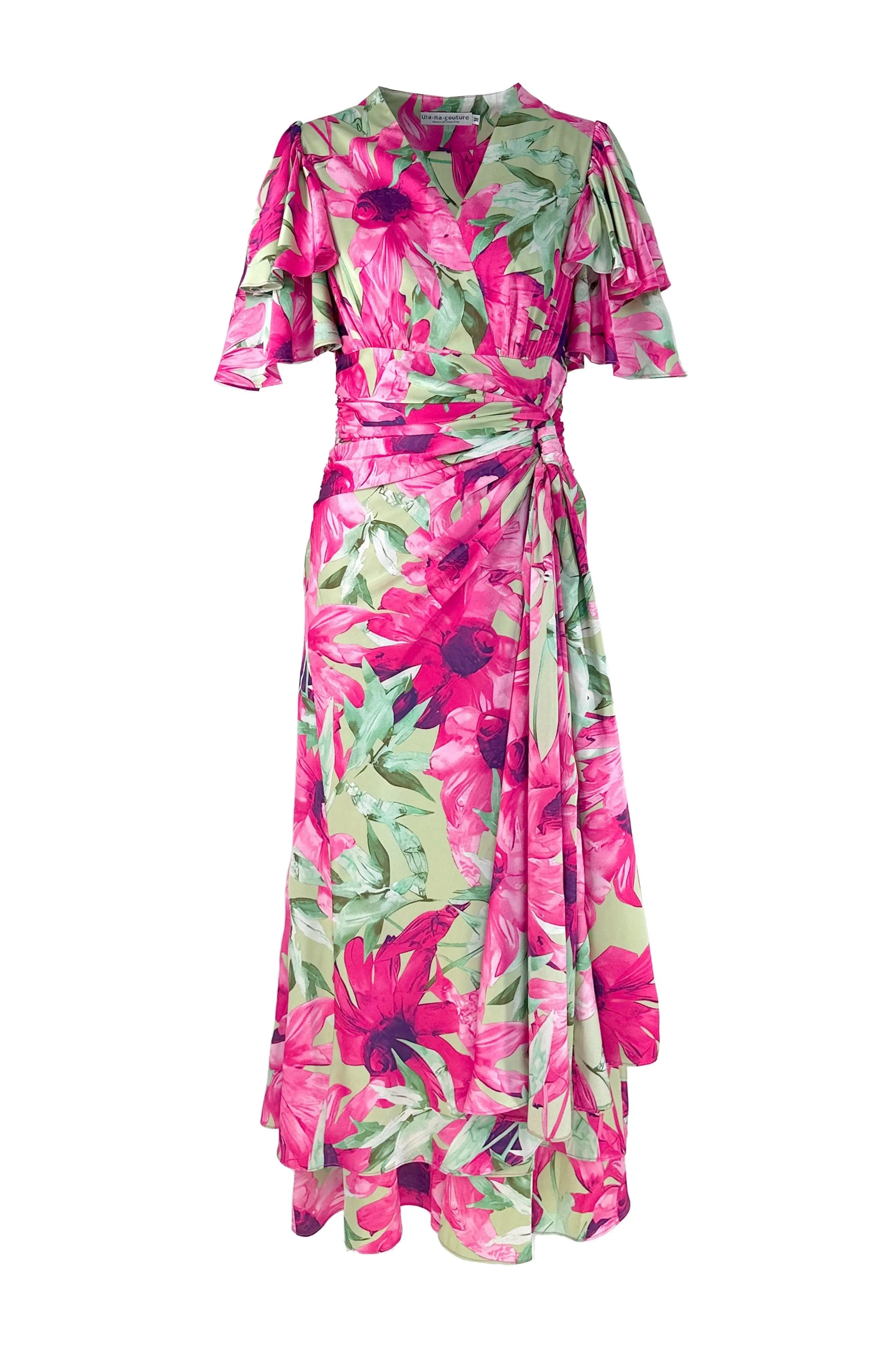 Summer floral chiffon ruffle edge dress for women with small stature, high-end French style vacation beach dress, summer